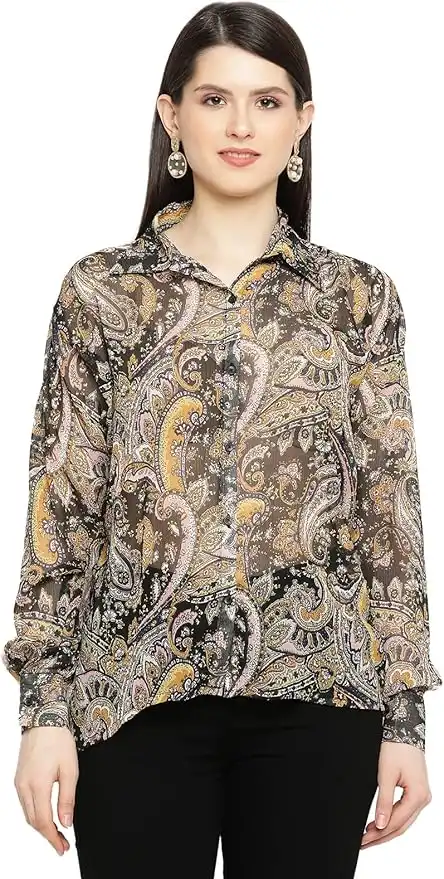 Shasmi Black Printed Chiffon Sheer Mesh Button Down Shirt Top Long Sleeve Drop Shoulder Blouse — Price History & Tracker | DeserTracker