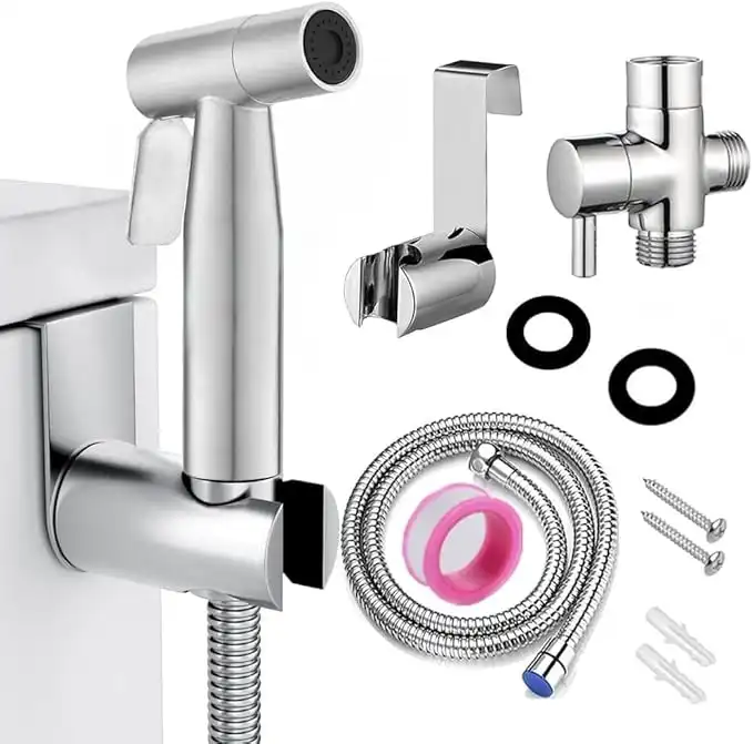 Shattaf Set Bidet Sprayer for Toilet – 304 Stainless Steel Handheld Jet Spray Set | Adjustable Water Pressure, 47" Hose, Wall & Toilet Mount | Personal Hygiene, Feminine Wash & Baby Care