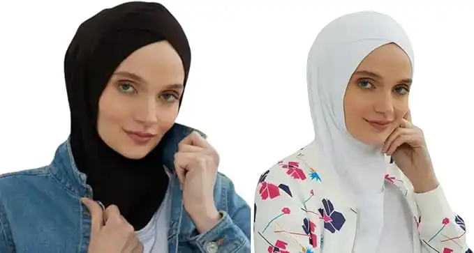 Sheiby 2-piece (Black & White) Muslim Women Hijab - latest head cross design Undercap Scarf with Neck Chin Cover- Bio based Modal stretchable cloth. Sports Hijab