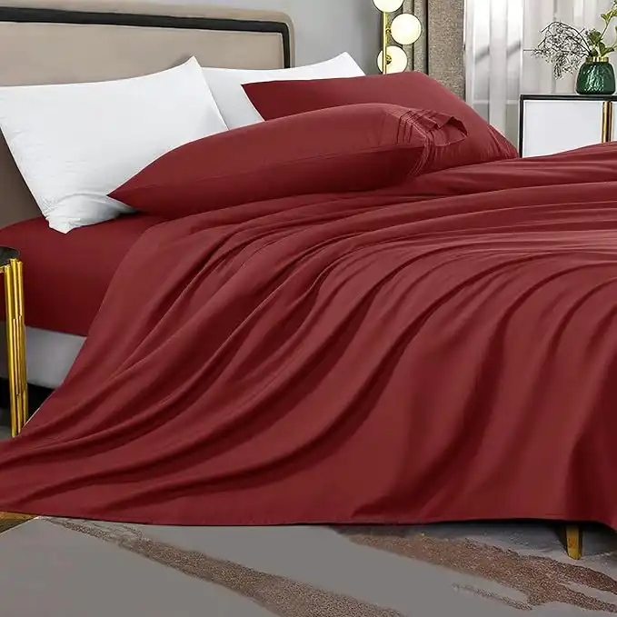 Shilucheng Bed Sheets Set Microfiber 1800 Thread Count Percale Super Soft and Comforterble 16 Inch Deep Pockets - 4 Piece (Queen, Burgundy) — Price History & Tracker | DeserTracker