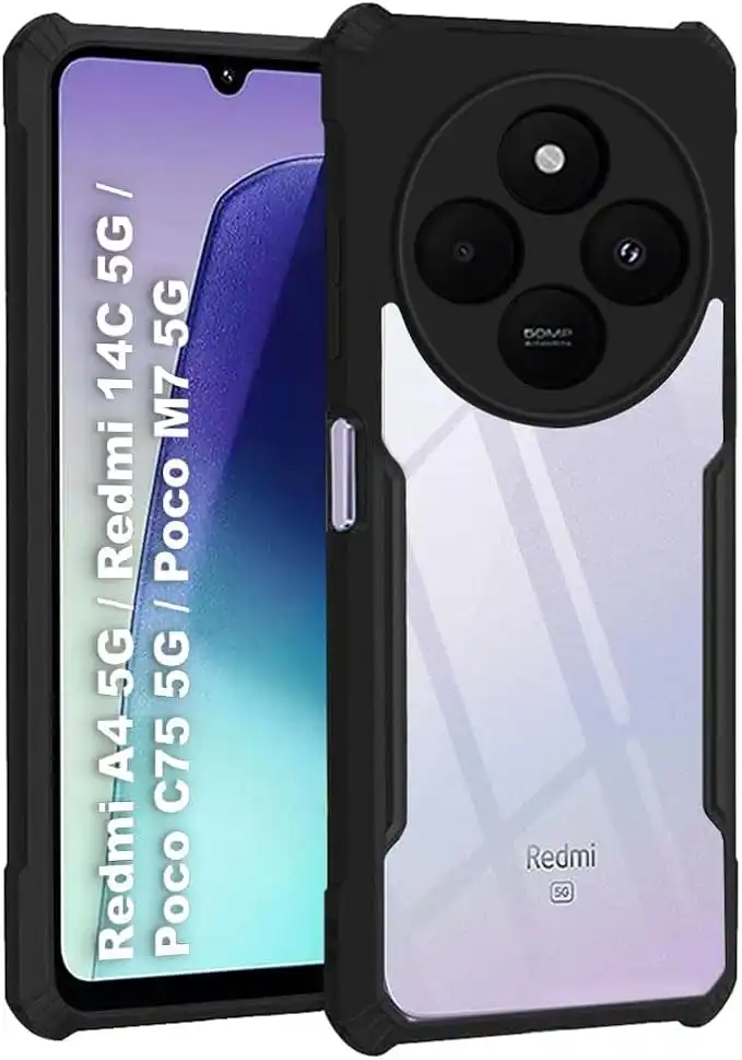 Shockproof Crystal Clear Back Cover Case for Mi Redmi A4 5G / Redmi 14C 5G / Poco C75 5g /Poco M7 | 360 Degree Protection | Protective Design | Transparent Cover (PC & TPU, Black Bumper) — Price History & Tracker | DeserTracker