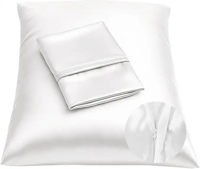 ShopBedding Satin Pillowcase with Zipper for Hair and Skin Care, Feels Soft and Cool Like a Silk Pillowcase, White Satin Pillow Cases 2 Pack, Slik Pillow Cover, Standard Size - Set of 2 - Blissford