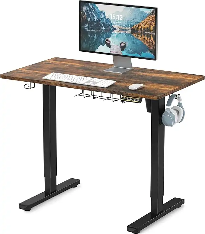SHW 40 x 22 Inches Electric Height Adjustable Sit to Stand Desk with Hanging Hooks and Cable Management, Black Frame and Rustic Brown Top — Price History & Tracker | DeserTracker