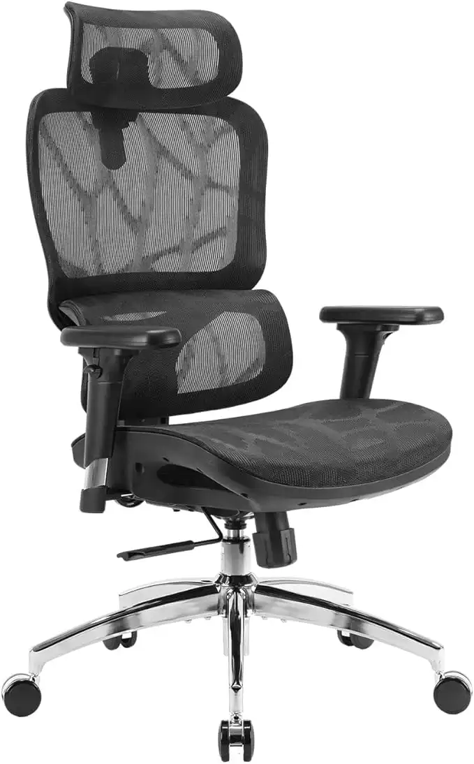 SIHOO M56B Ergonomic Office Chair, High Back Desk Chair, Lumbar Support, Swivel Computer Task Chair with Adjustable Headrest, Tilt Function, Black