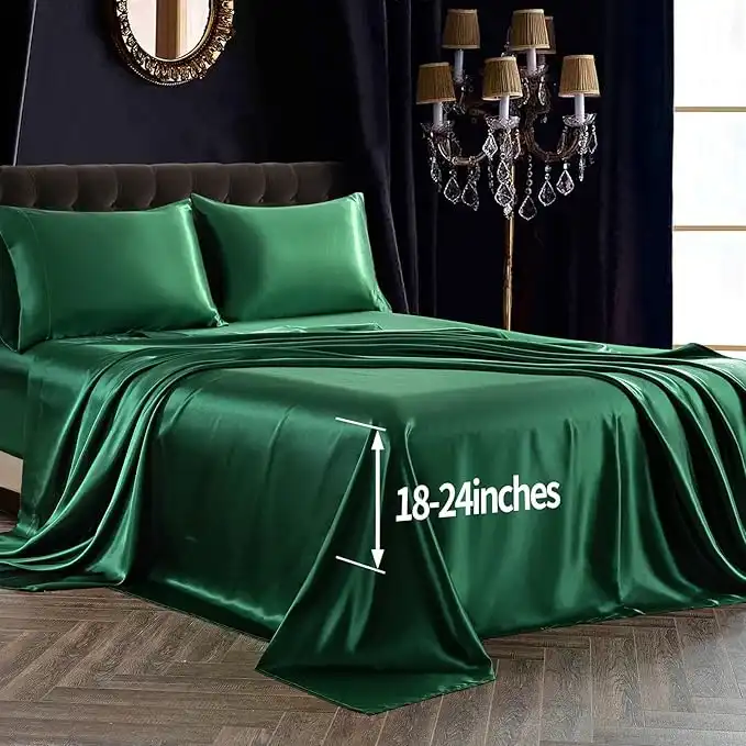 SiinvdaBZX 4Pcs Satin Sheet Extra Deep Pocket Sheets Queen Size, Ultra Silky Soft Emerald Green Satin Queen Bed Sheets Deep Fitted Sheet Set Fits 18-24 Inch Deep Pocket Mattress — Price History & Tracker | DeserTracker