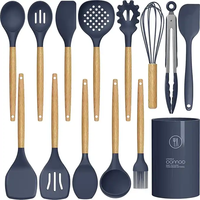 amazon.aeSilicone Cooking Utensils Set - 446°F Heat Resistant Silicone Kitchen Utensils for Cooking,Kitchen Utensil Spatula Set w Wooden Handles and Holder, BPA FREE Gadgets for Non-Stick Cookware (Navy Blue)