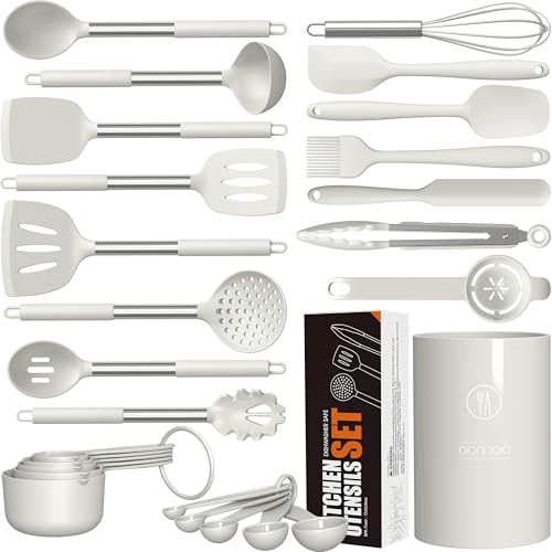 amazon.aeSilicone Cooking Utensils Set - Heat Resistant Kitchen Utensils Sets,Spatula,Spoon,Turner Tongs,Brush,Whisk,Stainless Steel Silicone Cooking Utensil for Nonstick Cookware Dishwasher Safe (Cream White)