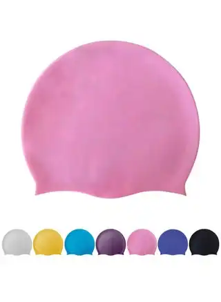 Silicone Swimming Cap for Men & Women - Waterproof, Anti-Slip, Stretchable Swim Hat - Pink Unisex