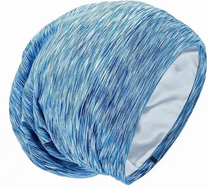 Silk Satin Lined Bonnet Sleep Cap - Adjustable Stay on All Night Hair Wrap Cover Slouchy Beanie for Curly Hair Protection