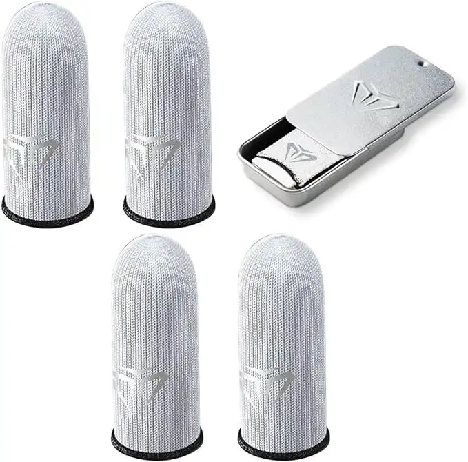 amazon.aeSilver Fiber Gaming Finger Sleeves with Silver Metal Storage Case, Anti-Sweat, Ultra-Thin Touch Screen Thumb Gloves for PUBG, COD, FORTNITE - 2 Pairs (4 Pieces)- (Sliver & Black)