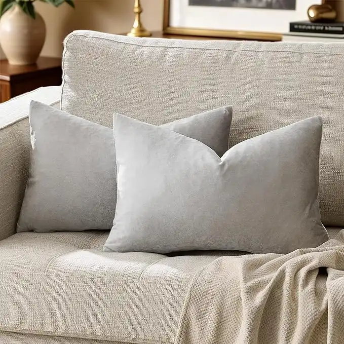 Silver Grey Velvet Decorative Throw Pillow Covers for Sofa Bed 2 Pack Soft Cushion Cover — Price History & Tracker | DeserTracker