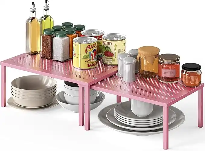 amazon.aeSimple Houseware Expandable Stackable Kitchen Counter Shelf Organizer, Pink, Metal Top, 11.25 in L x 7.9 in W x 5.4 in H