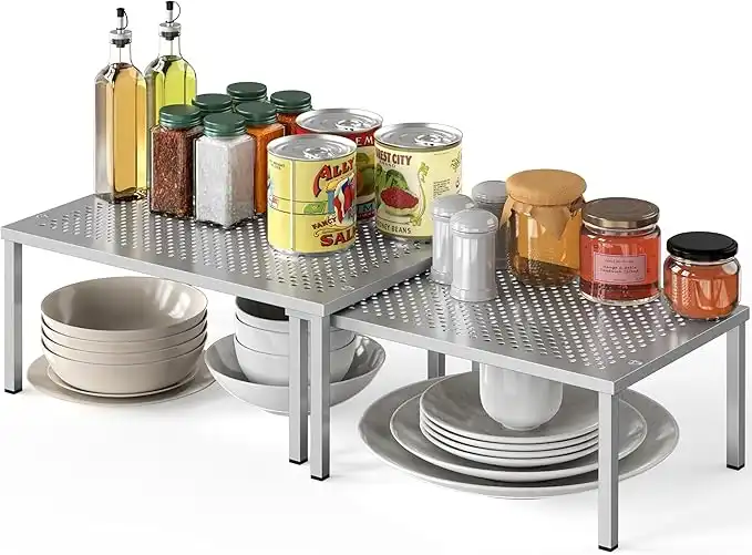 amazon.aeSimple Houseware Expandable Stackable Kitchen Cabinet and Counter Shelf Organizer, White