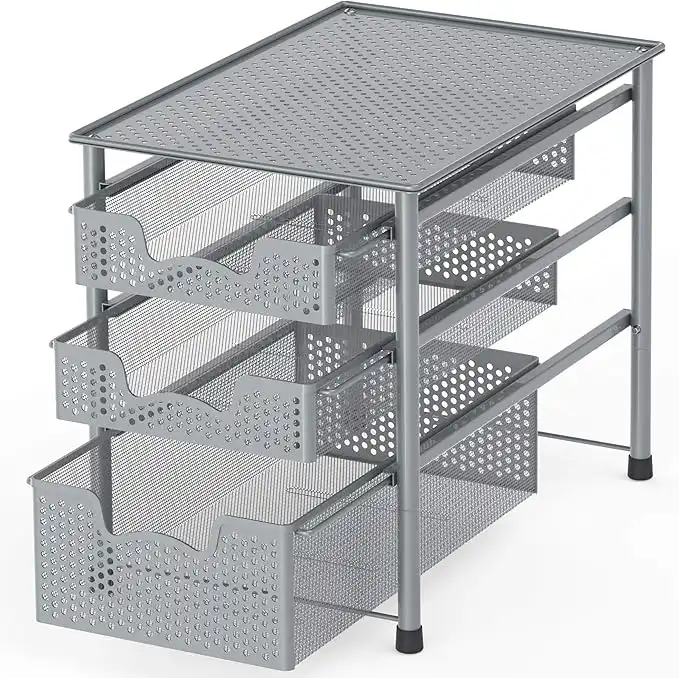 Simple Houseware Stackable 3 Tier Sliding Basket Organizer Drawer, Silver