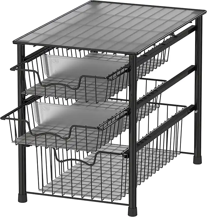 amazon.aeSimple Houseware 3-Tier Stackable Sliding Basket Storage Organizer Drawer for Bathroom and Kitchen, Black