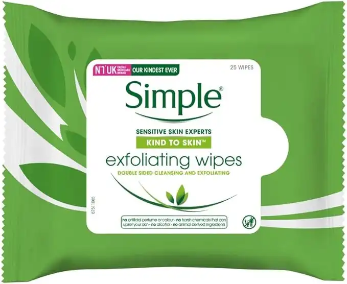 Simple Kind to Skin Exfoliating Facial Wipes 25 Pieces Pack of 6