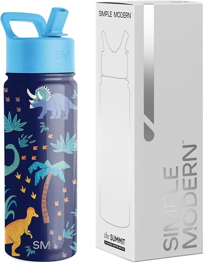 Simple Modern Kids Water Bottle with Straw Lid | Insulated Stainless Steel Reusable Tumbler for Toddlers, Boys | Summit Collection | 18oz, Jurassic Jungle — Price History & Tracker | DeserTracker