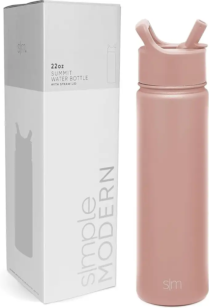 Simple Modern Water Bottle with Straw Lid Vacuum Insulated Stainless Steel Metal Thermos Bottles | Reusable Leak Proof BPA-Free Flask for Gym, Travel, Sports | Summit Collection | 22oz, Mauve Me