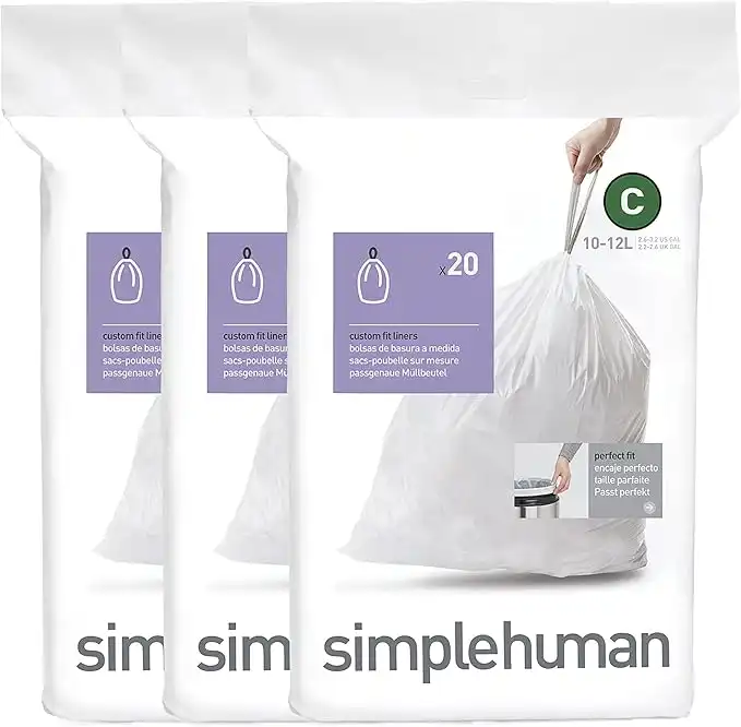 simplehuman Code C Custom Fit Drawstring Trash Bags in Dispenser Packs, 60 Count, 10-12 Liter / 2.6-3.2 Gallon, White — Price History & Tracker | DeserTracker