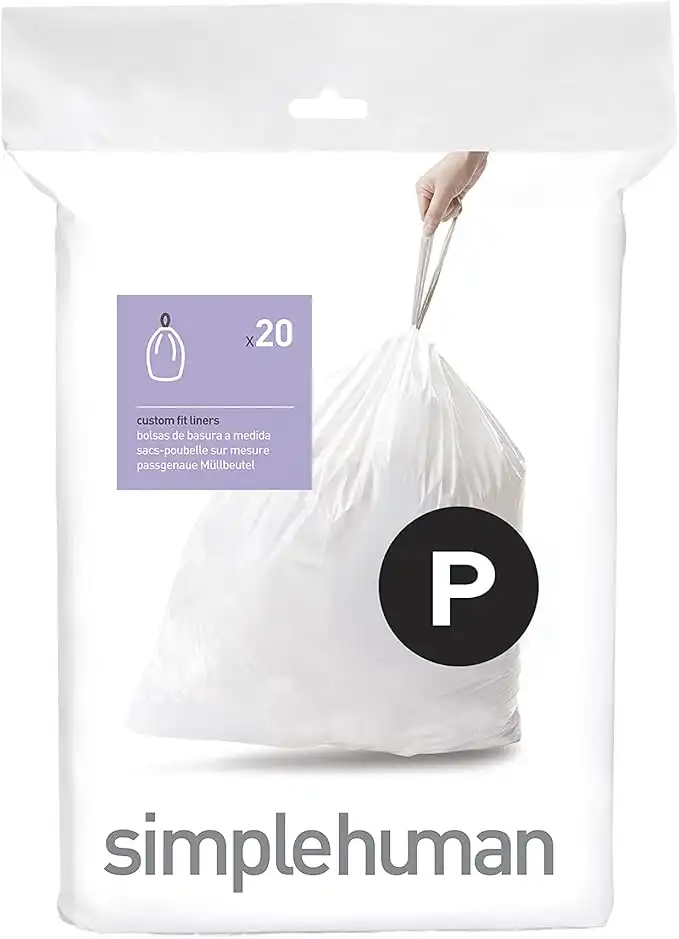 simplehuman Code P Custom Fit Drawstring Trash Bags in Dispenser Packs, 20 Count, 50-60 Liter / 13.2-15.9 Gallon, White — Price History & Tracker | DeserTracker