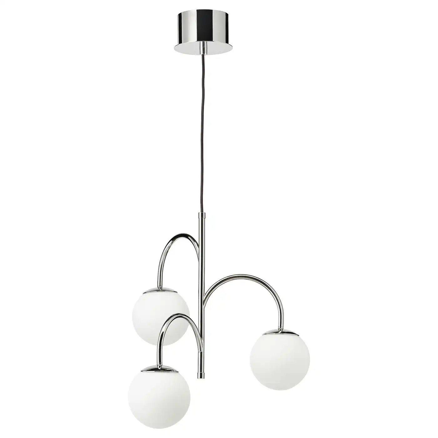 SIMRISHAMN Pendant lamp, 3-armed - chrome-plated/opal white glass 55 cm