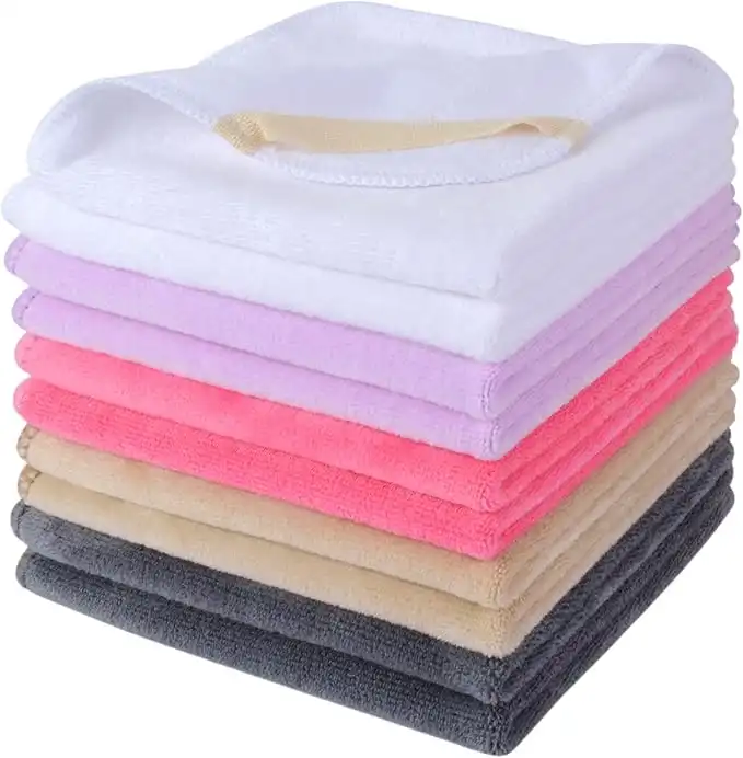 SINLAND Microfiber Facial Cloths Fast Drying Washcloth 12inch x 12inch (Pack of 10, White+Cream+Pink+Purple+Grey)