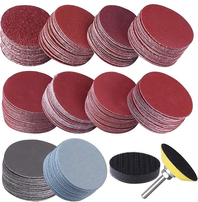 SIQUK 200 Pcs 2 Inch Sanding Discs with 1 pc 1/4 Inch Shank Backing Pad and 1 pc Soft Foam Buffering Pad 80/180/ 240/320/ 400/600/ 800/1000/ 2000/3000 Grit