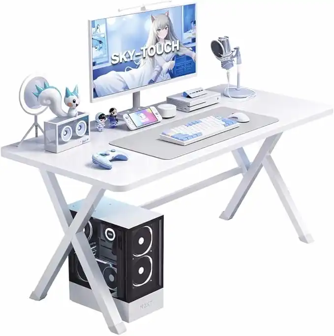 SKY-TOUCH 120x60cm Desktop Computer Desk, Home Office Computer Workstation, Gamer Desk with K-Shaped Ergonomic Computer Desk for Home, Office, Student Writing Study Desk