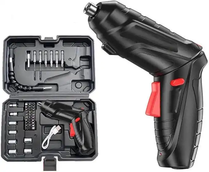 SKY-TOUCH Electric Screwdriver Set, 47 In 1 Usb Rechargeable Screwdriver Gun Twistable Handle, 3.6V Drill Screwdriver Bits Set With Built-In Led, 1800Mah Black