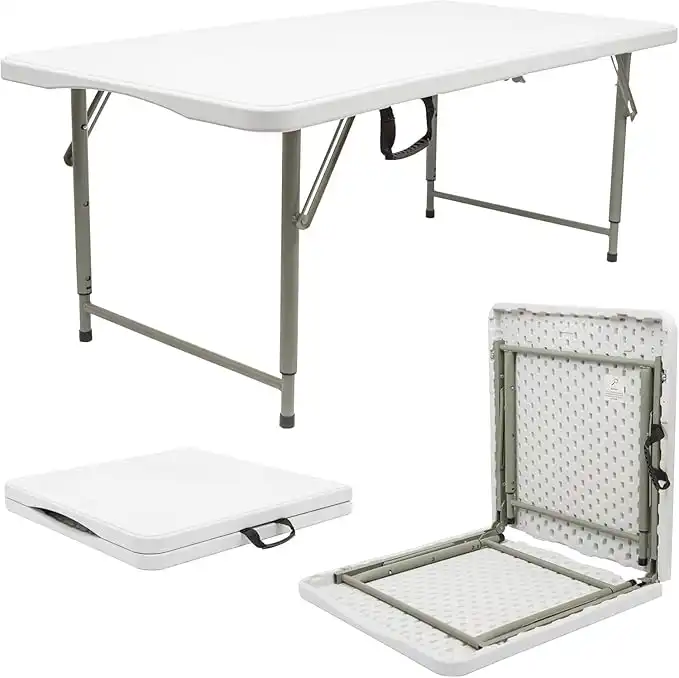 SKY-TOUCH Folding Lightweight Trestle Outdoor Camping Table, Heavy Duty Plastic Outdoor Picnic Table, Folds in Half with Carry Handle, White (120x60x75cm)