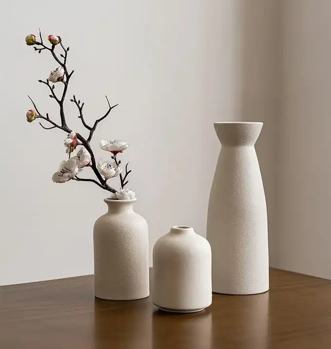 amazon.aeSKY-TOUCH Home Decor Ceramic Vase Set of 3 : Pampas Grass Dried Flowers Vase Modern Boho Vases Decoration Items for Living Room Home Kitchen Dinner Table Shelf Office Desk Decor (Beige)