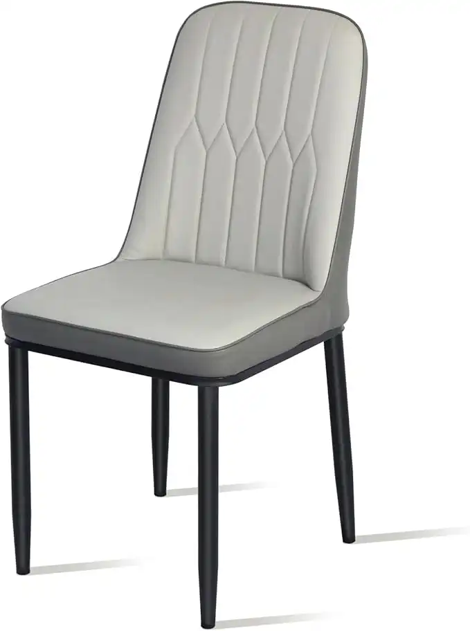 SKY-TOUCH Modern PU Leather Dining Chair, High Back with Soft Seat, Metal Side Legs, Grey, 44x40x90cm, Ideal for Kitchen, Dining Room, Living Room, and Vanity