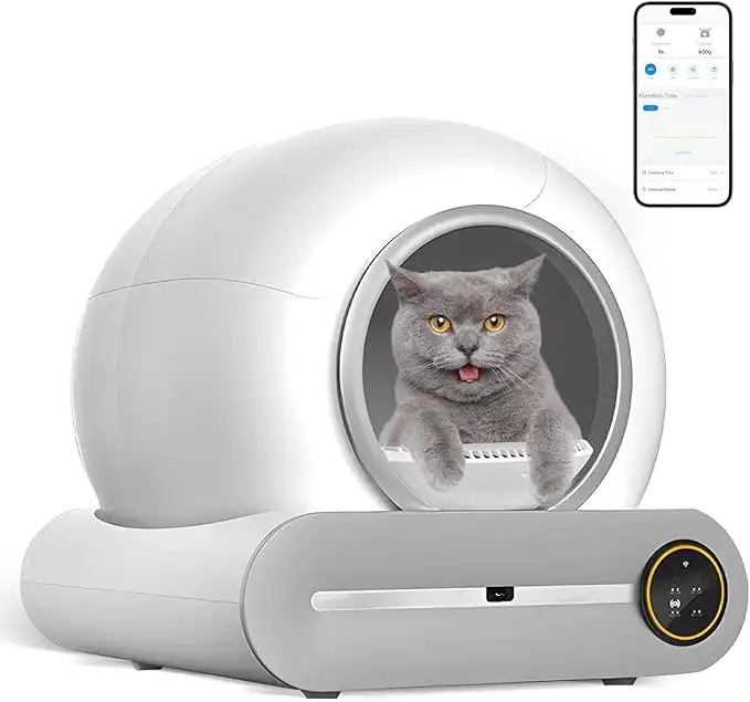 SKY-TOUCH Smart Self Cleaning Cat Litter Box,65L+ 9L Extra Large Capacity Upgraded Automatic Self Litter Box, APP Control/Odor Removal/Safety Protection/Low Noise for Cats 1-8kg,1 Roll Trash Bag