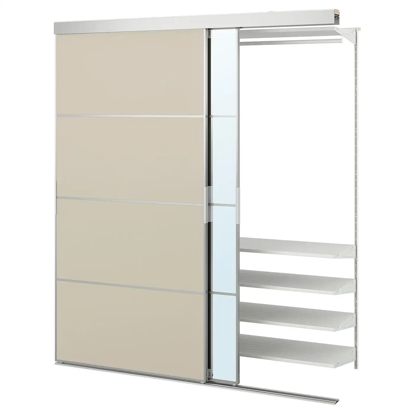 SKYTTA / MEHAMN/AULI Sliding door combination - aluminium double sided/grey-beige mirror glass 177x205 cm