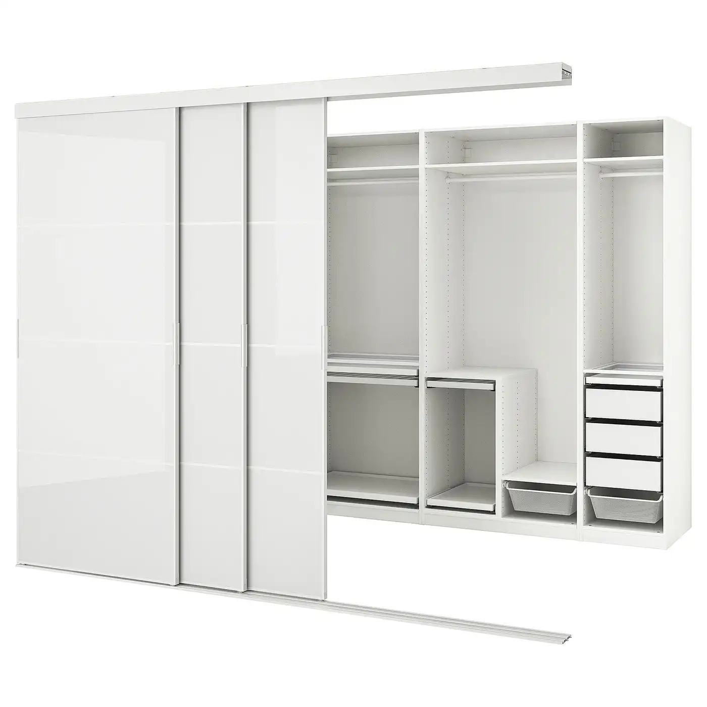 IKEA PAX/SKYTTA Wardrobe combination 301x160x240 cm white/high-gloss light grey