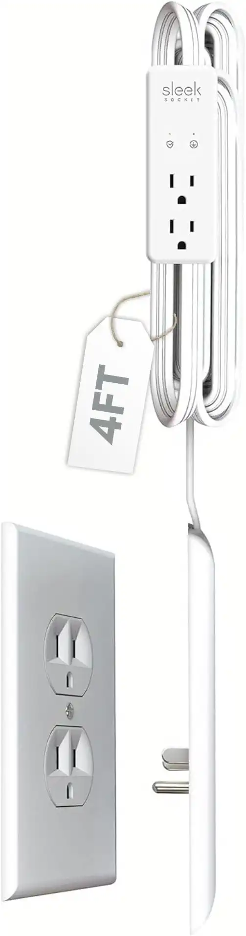 Sleek Socket For TV or Mounted Cabinets, Ultrathin Outlet Corrector with Cable Corrector Kit, 2-Outlet Strip, Universal Size (Ideal for TV or Mounted Cabinets) - 8 Feet / 96 Inches — Price History & Tracker | DeserTracker