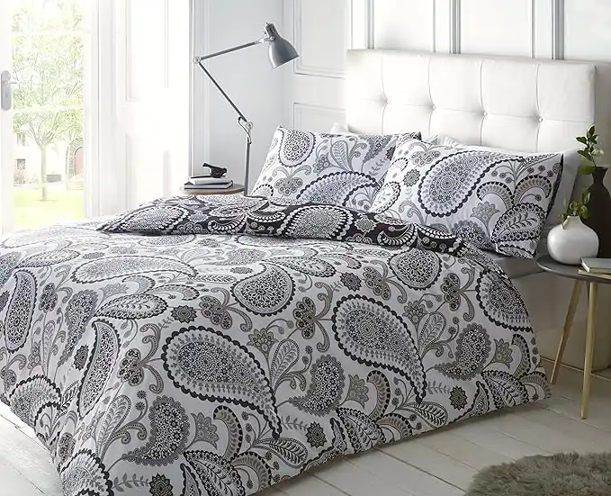 Sleepdown Paisley Black Duvet Cover & Pillowcase Set Bedding Digital Print Quilt Case Single Double King Bedding Bedroom Daybed (KIng), Grey — Price History & Tracker | DeserTracker
