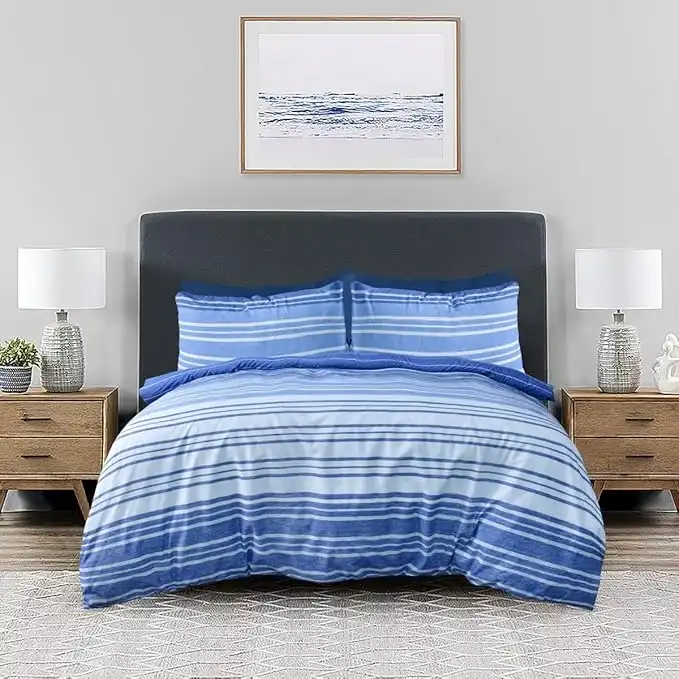 amazon.aeSleepdown Textured Stripe Navy Blue White Soft Easy Care Cosy Reversible Duvet Cover Quilt Bedding Set with Pillowcases - King (230cm x 220cm)