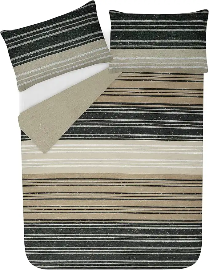 amazon.aeSleepdown Duvet Cover Set - Brown - Textured Stripe - Reversible Quilt Cover Easy Care Bed Linen Soft Cosy Bedding Sets with Pillowcases - King (230 cm x 220 cm)
