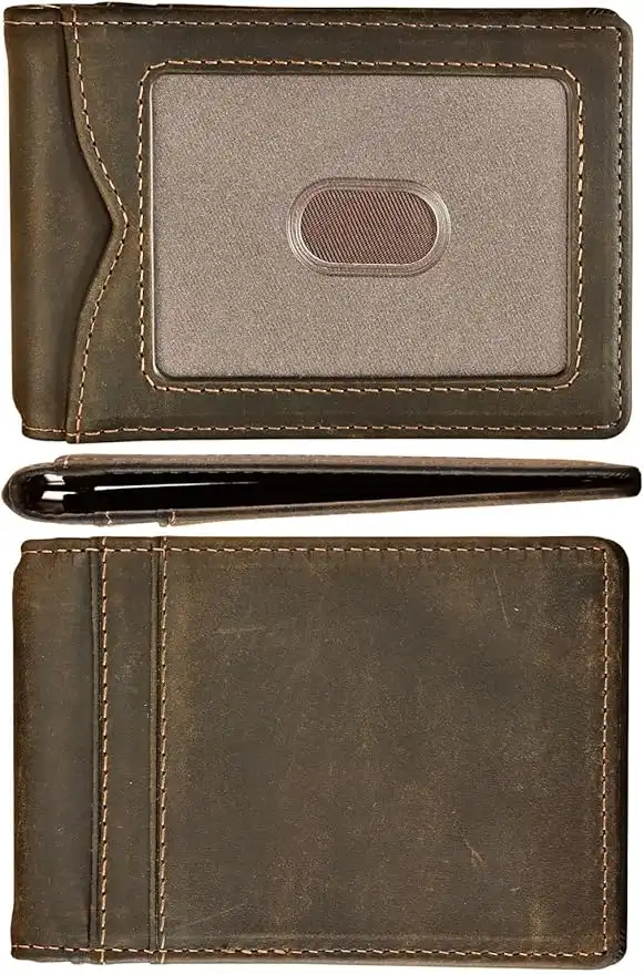 Slim Wallet with Money Clip RFID Blocking Minimalist Bifold Wallet for Men Genuine Leather Front Pocket Card Holder, As137 - Crazy Horse Leather Dark Brown, One size — Price History & Tracker | DeserTracker