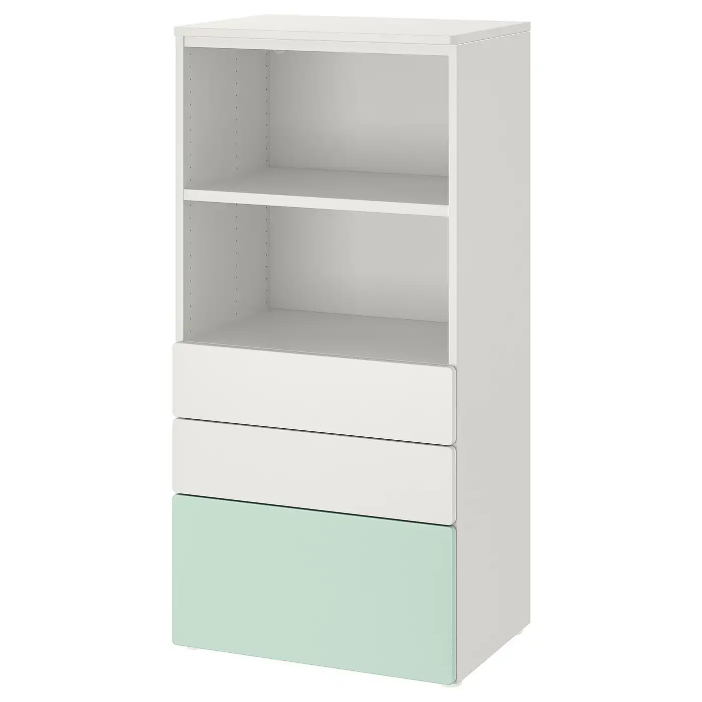 SMÅSTAD / PLATSA Bookcase - white light green/with 3 drawers 60x42x123 cm