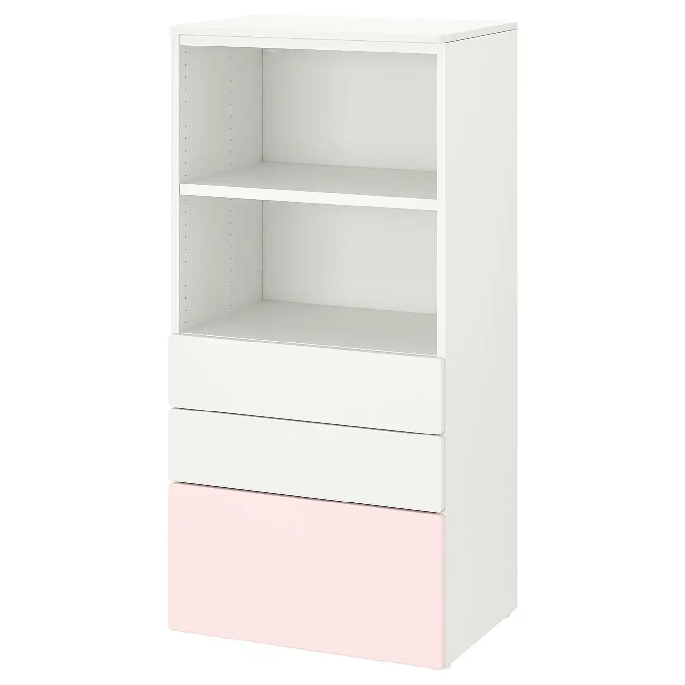 SMÅSTAD / PLATSA Bookcase - white pale pink/with 3 drawers 60x42x123 cm