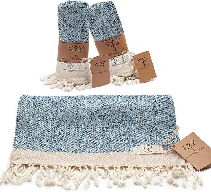 amazon.aeSMYRNA TURKISH COTTON Original Hand Towels Herringbone Series Set of 2 | 100% 16 x 40 Inches | Decorative Bathroom Peshtemal Towel for Hand, Face, Hair, Gym, Yoga, Tea, Kitchen and Bath (Light Blue)