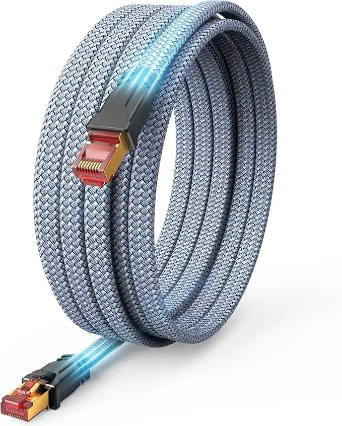 amazon.aeSnowkids Cat 8 Ethernet Cable 30 FT, Flat High Speed 30 FT Ethernet Cable, 40Gbps, 2000Mhz Braided High Duty Long Ethernet Cable, Gold Plated RJ45 Connector for Modem/Router/PS3/4/5/Gaming/PC
