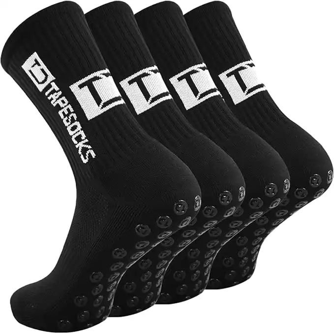 amazon.comMen's Football Socks with Anti-Slip Grip Pads – 4 Pairs Non-Slip Sports Socks for Soccer, Basketball & Training, Breathable & Comfortable
