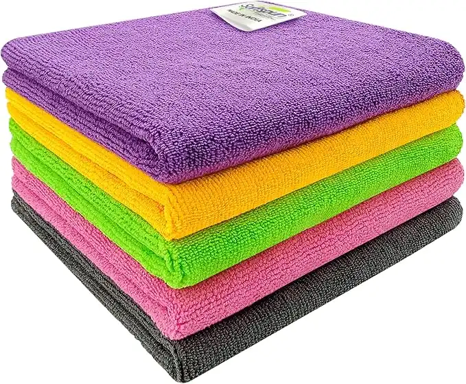 SOFTSPUN Microfiber Cloth - 5 pcs - 40x40 cms - 340 GSM Multi-Color - Thick Lint & Streak-Free Multipurpose Cloths - Automotive Microfibre Towels for Car Bike Cleaning Polishing Washing & Detailing