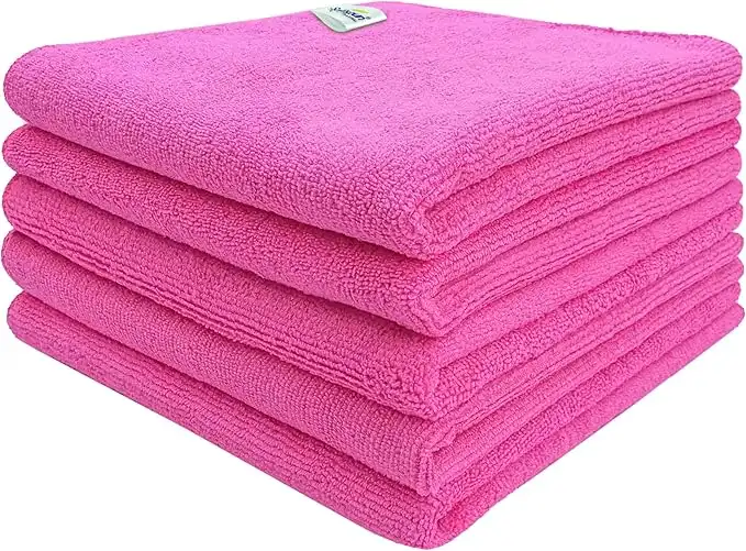 SOFTSPUN Microfiber Cloth - 5 pcs - 40x40 cms - 340 GSM Pink - Thick Lint & Streak-Free MultiPurpose cloths - Automotive Microfibre Towels for Car Bike Cleaning Polishing Washing & Detailing