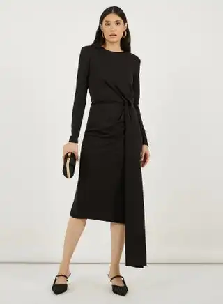 Solid Long Sleeves Sheath Midi Dress with Self Tie Up — Price History & Tracker | DeserTracker