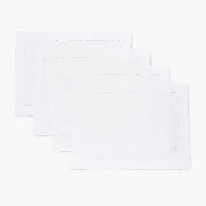 Solino Home Linen Placemats Set of 4 - Classic Hemstitch White Placemats 14 x 19 Inch - 100% Pure Linen Table Mats for Winter, Valentines, Holiday, New Year
