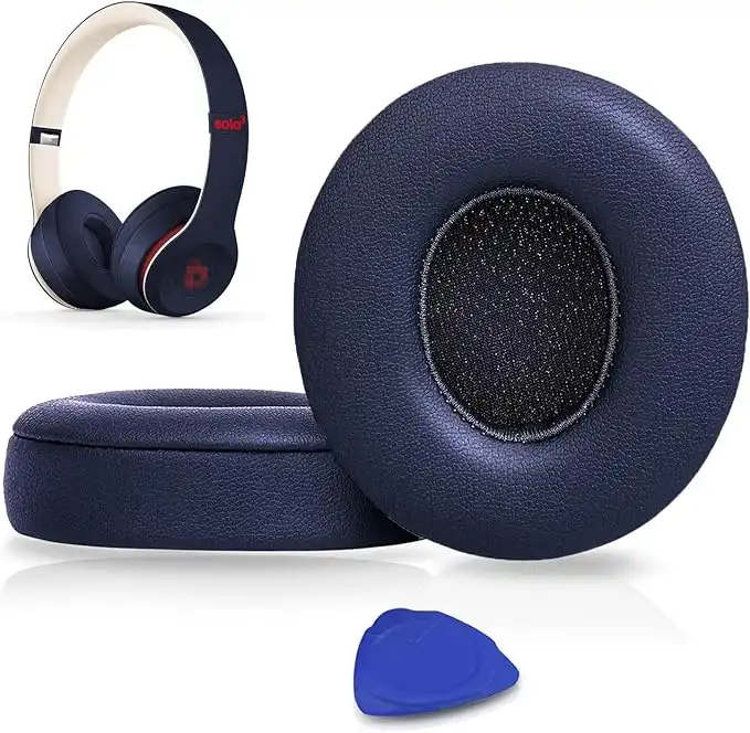 SoloWIT Ear Pads Cushions Replacement, Earpads for Beats Solo 2 & Solo 3 Wireless On-Ear Headphones with Soft Protein Leather, Stronger Adhesive, Noise Isolation Memory Foam-Navy Blue